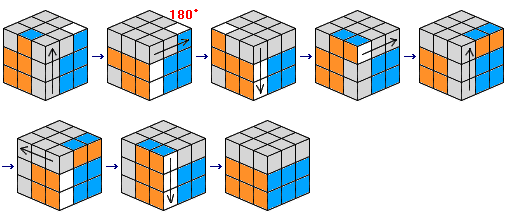 コーナーキューブの位置が違うパターン15(図)も、 実は上記理屈を覚えておけば全く同じです。 上面を動かしてセットを作る段階が90°か180°かが違うだけです。