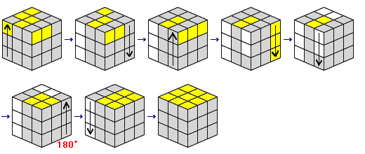 パターン18とパターン37はセット型です。 完成状態からパターン18を揃える操作(実際はパターン37の逆再生型)をすると、パターン37が得られます。 パターン18の揃え方は、以下の通りです。