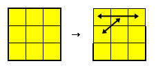 - 最初の2手ですが、入れ替えの必要が無いキューブがある、右側と手前側を動かします。