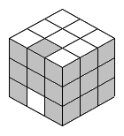 まず1面を揃えます。別に何色から揃えても構いませんが、当サイトでは白から揃えていきます。この時、横の色もきちんと揃えます。つまり、右図のようであってはいけません。それで、最初に1面の横も揃えるコツを説明したいと思います。
