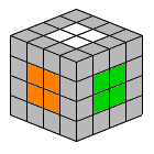 3面目は緑を揃えてみたいと思います。 3面目を揃える際も、基本的に1面を揃える場合と同じです。 ただし両脇の面(白と青)を崩さないために、 左右に動かす操作は180°になります。